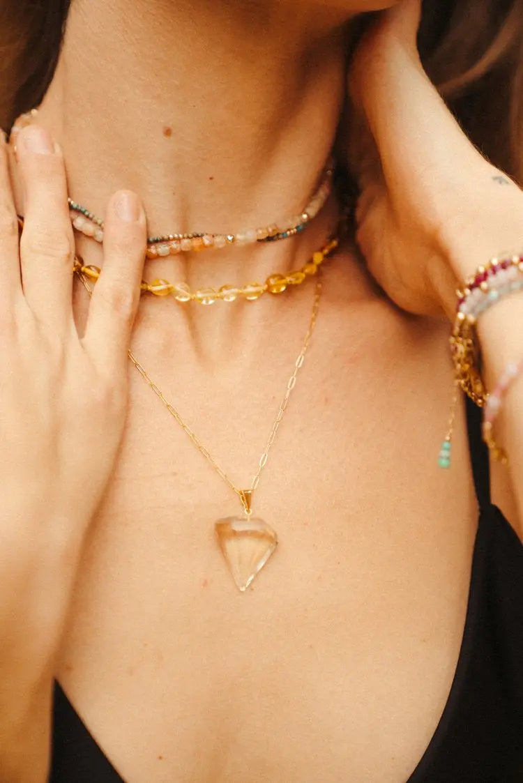 Each of these limited-edition necklaces features a show-stopping, hand-cut AAA citrine pendant—full of golden warmth and natural clarity. These faceted gems sparkle in the light like drops of sunlight, suspended from a luxe 14k gold-filled chain that’s built to last.