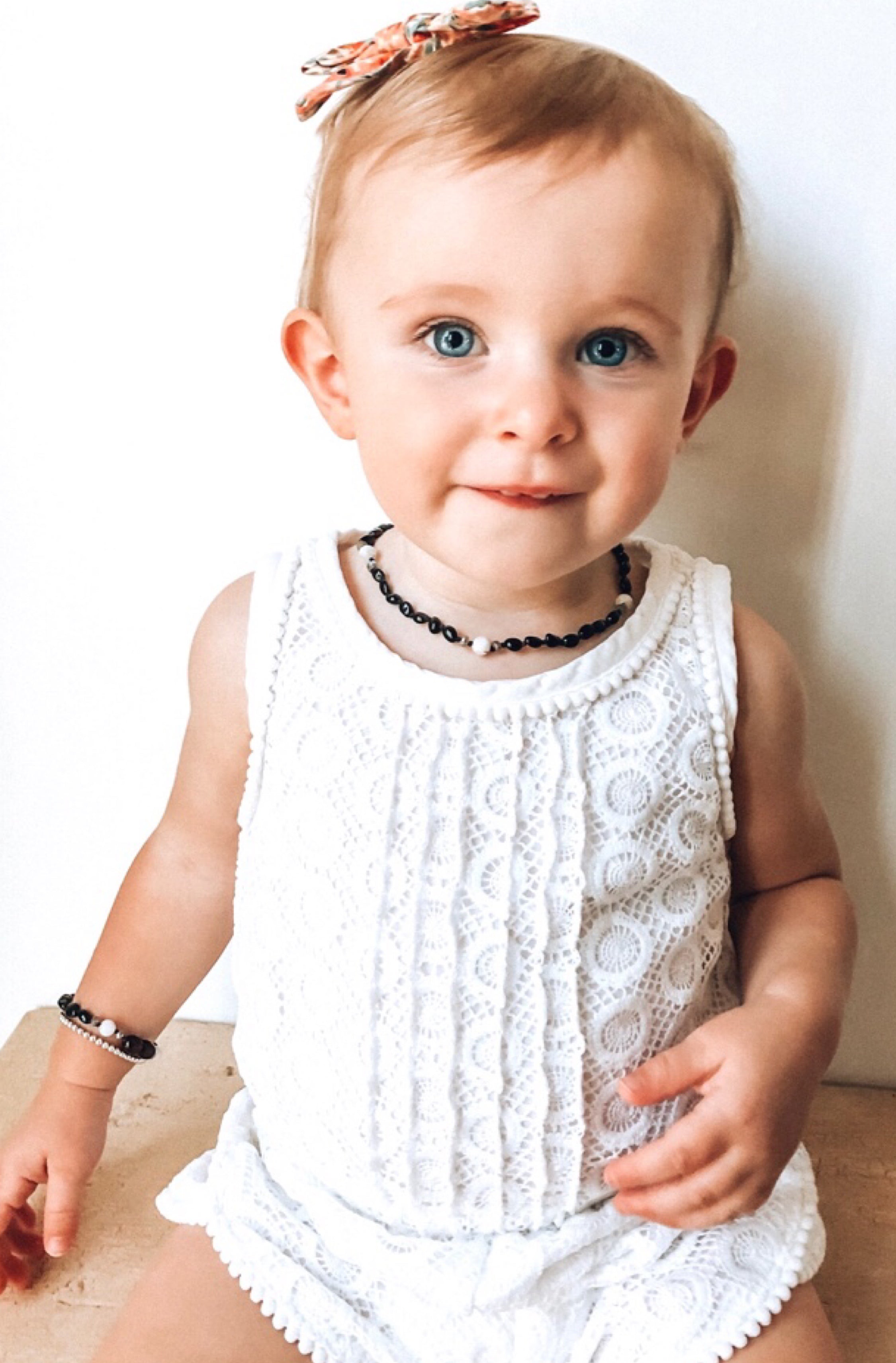 ⢠When ordering a necklace for your child, keep in mind that you want to necklace to be loose around the neck but NOT long enough to reach over their chin and into their mouth (to prevent them from biting the beads).Â