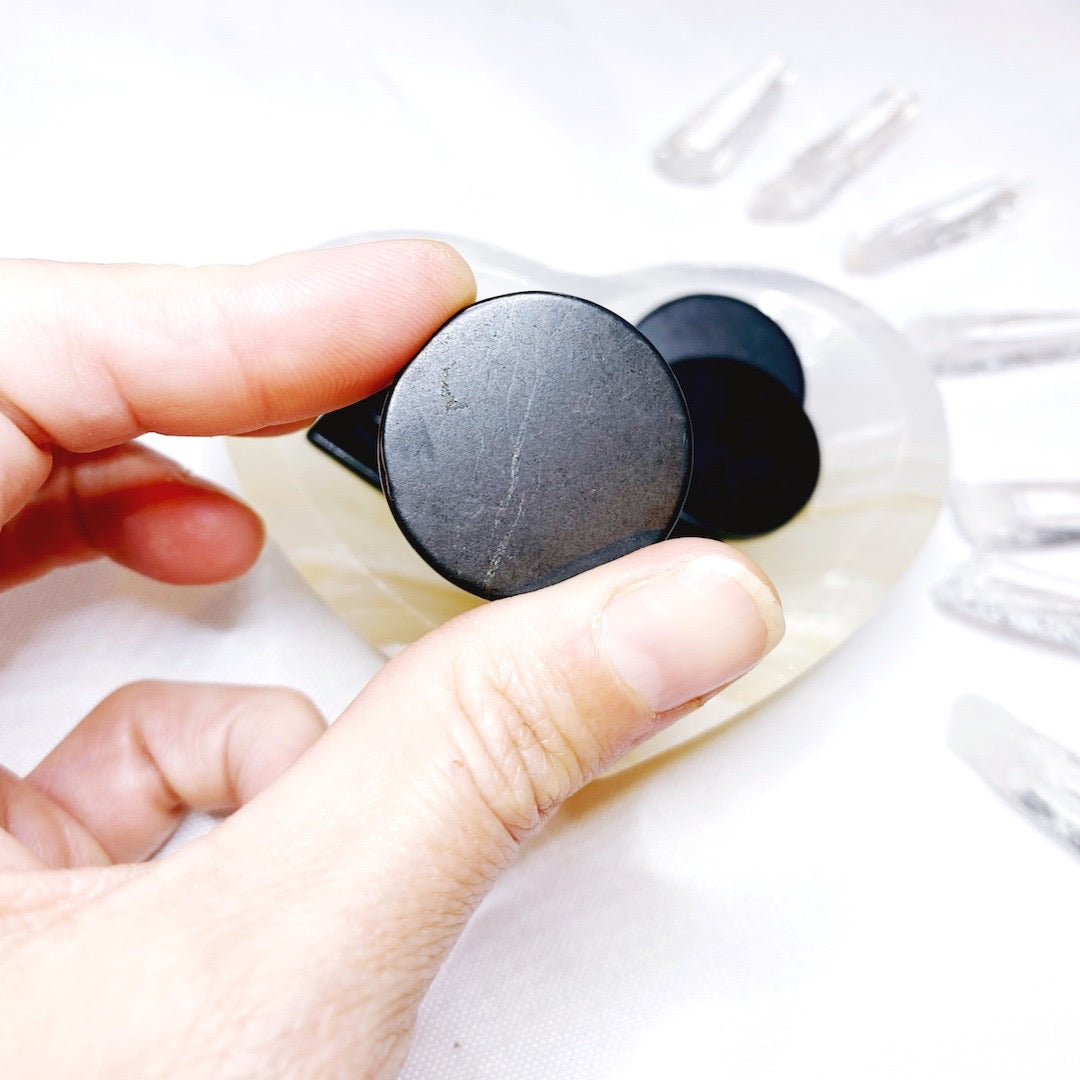 Shungite is a powerful EMF protection stone, which blocks and absorbs EMF radiation due to the fullerenes found inside. Stick on your cell phone or any constant source of radiation, such as your router, computer, microwave, etc. to absorb the radiation.