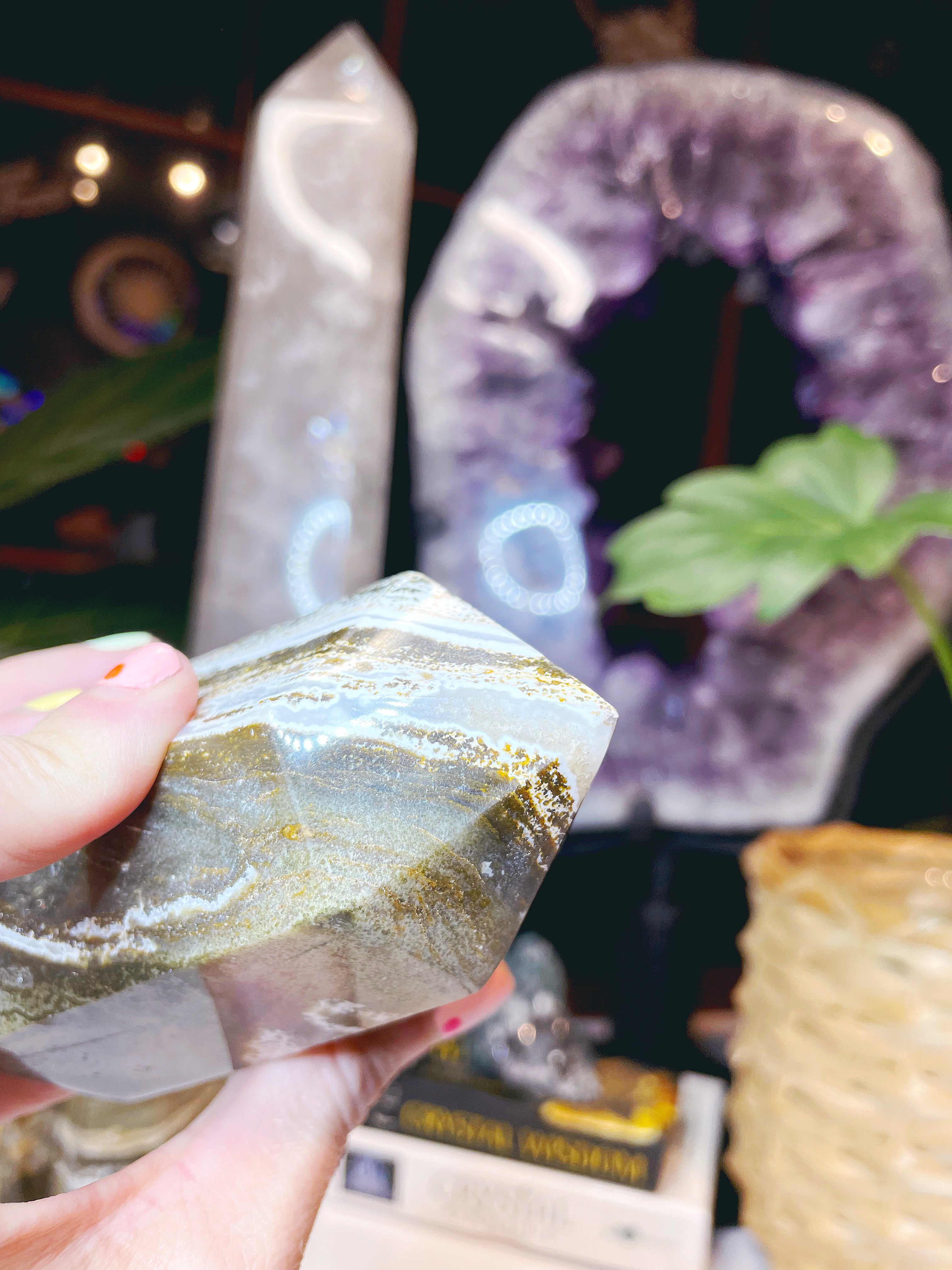 Ocean Jasper, also known as Orbicular Jasper is a stone of positivity, very helpful for those suffering from depression to focus on the positive and wholesome aspects of life. Ocean Jasper helps to work through self destructive and addictive behaviors, (Great paired with amethyst for this). Keeps the atmosphere of a room pleasant and relaxing.