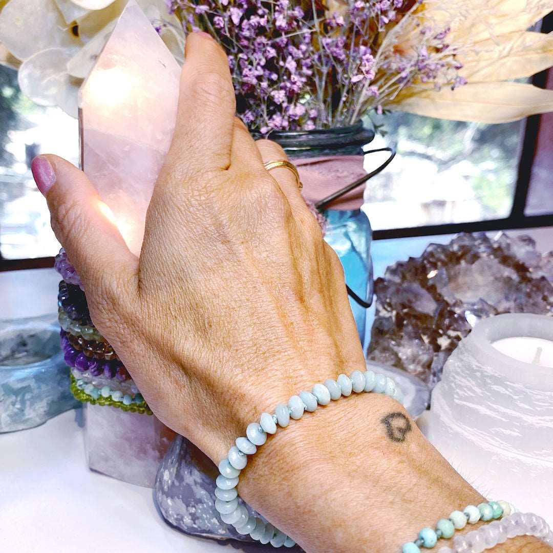 Bracelet pictured measures 7” & is hand knotted between each Amazonite bead and fastened with a 14k gold filled clasp.