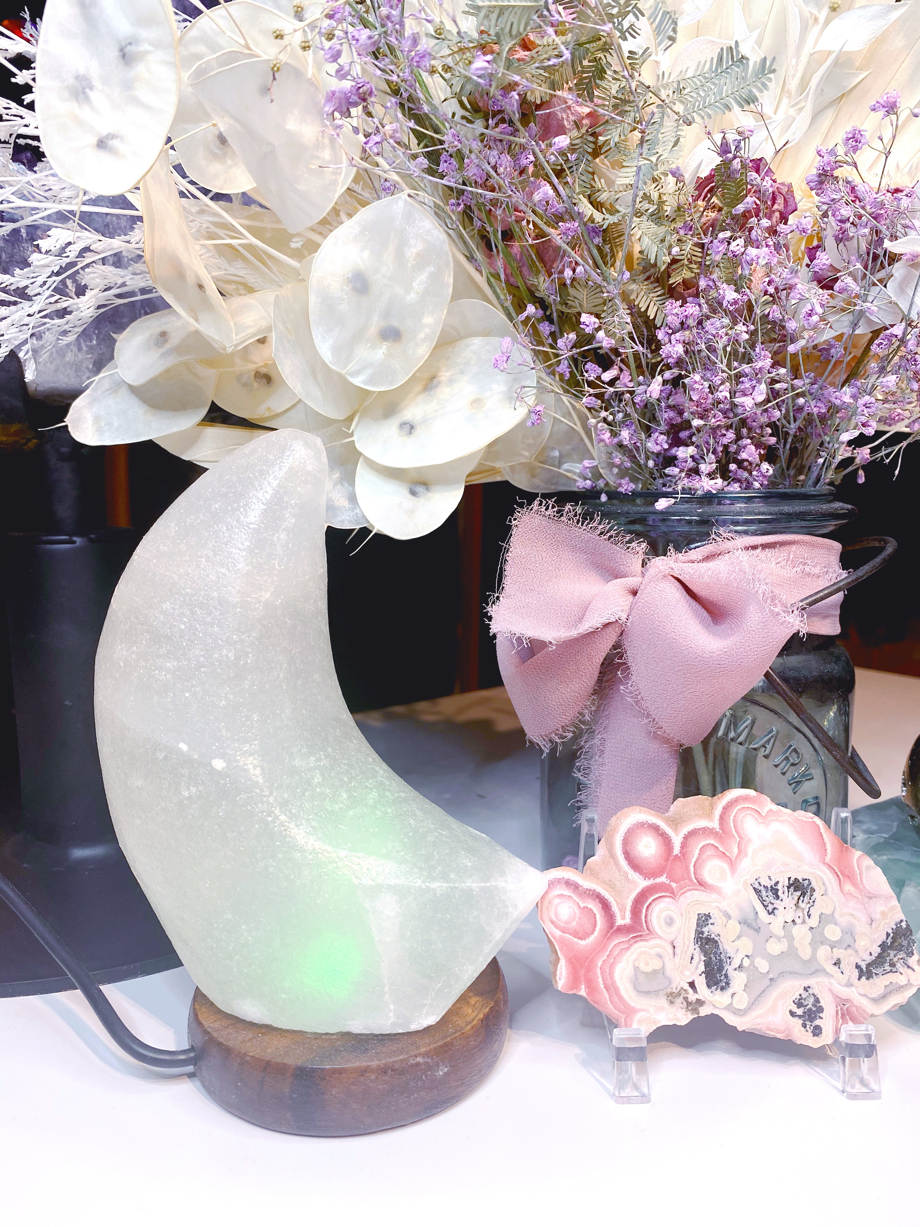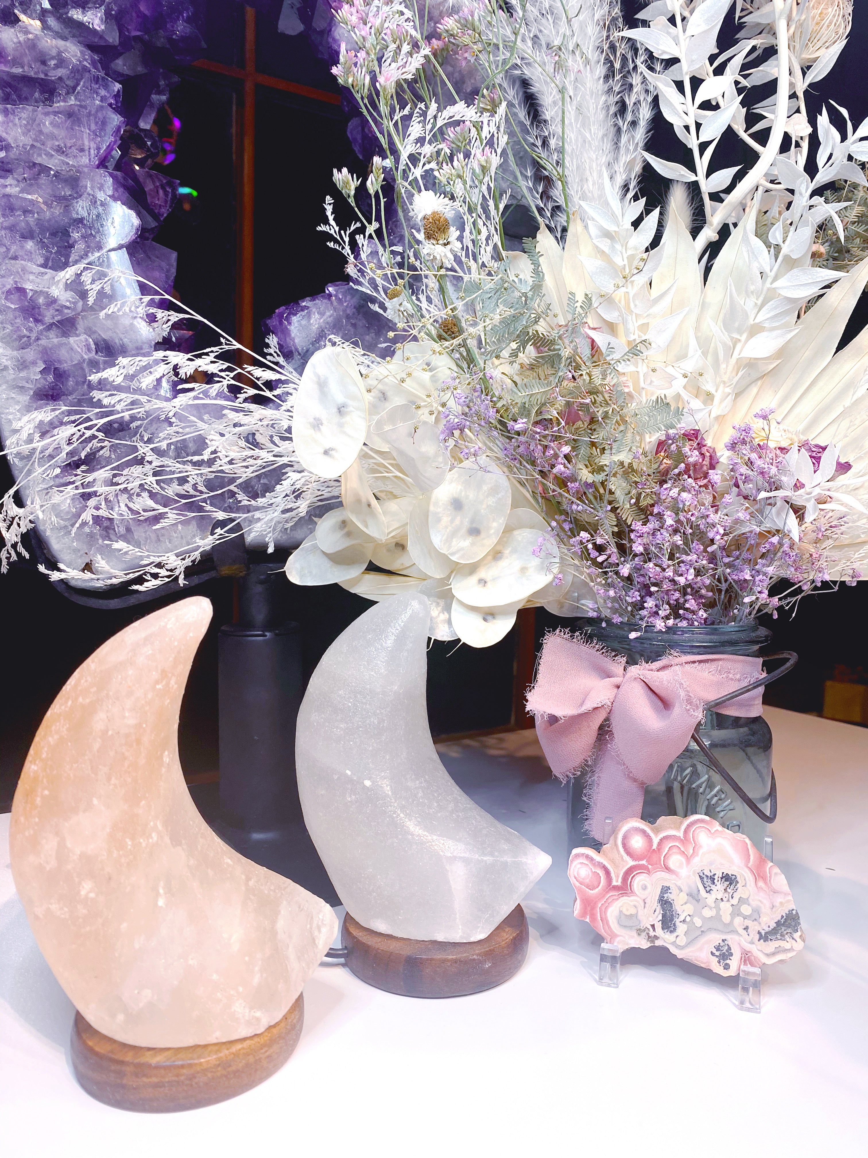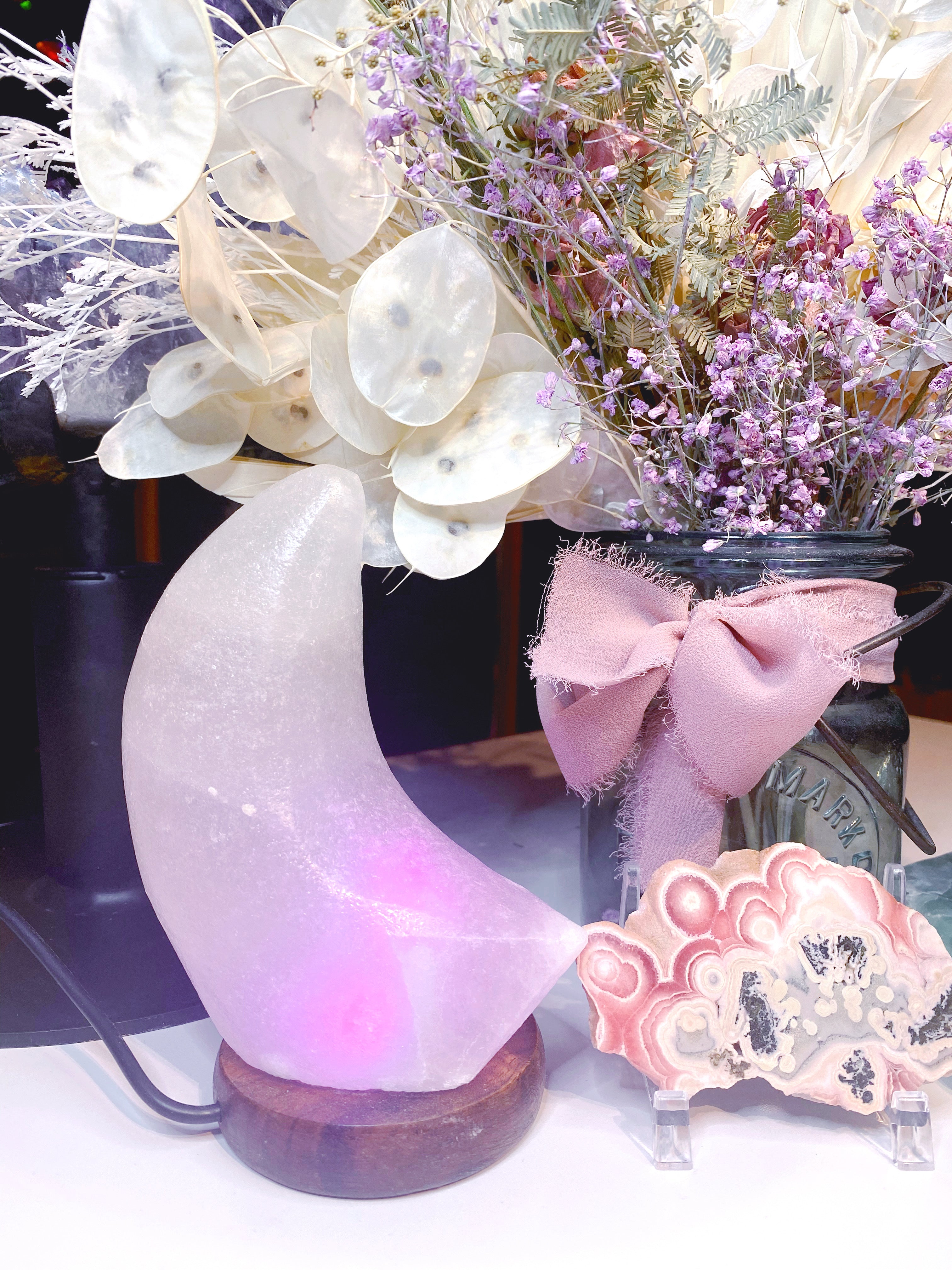 These Crescent Moon Himalayan Salt Lamps are perfect for any room. They are thought to be an energy booster and help in purifying the air around you. Himalayan salt helps to uplift your mood, reduce stress and aides in relaxation.