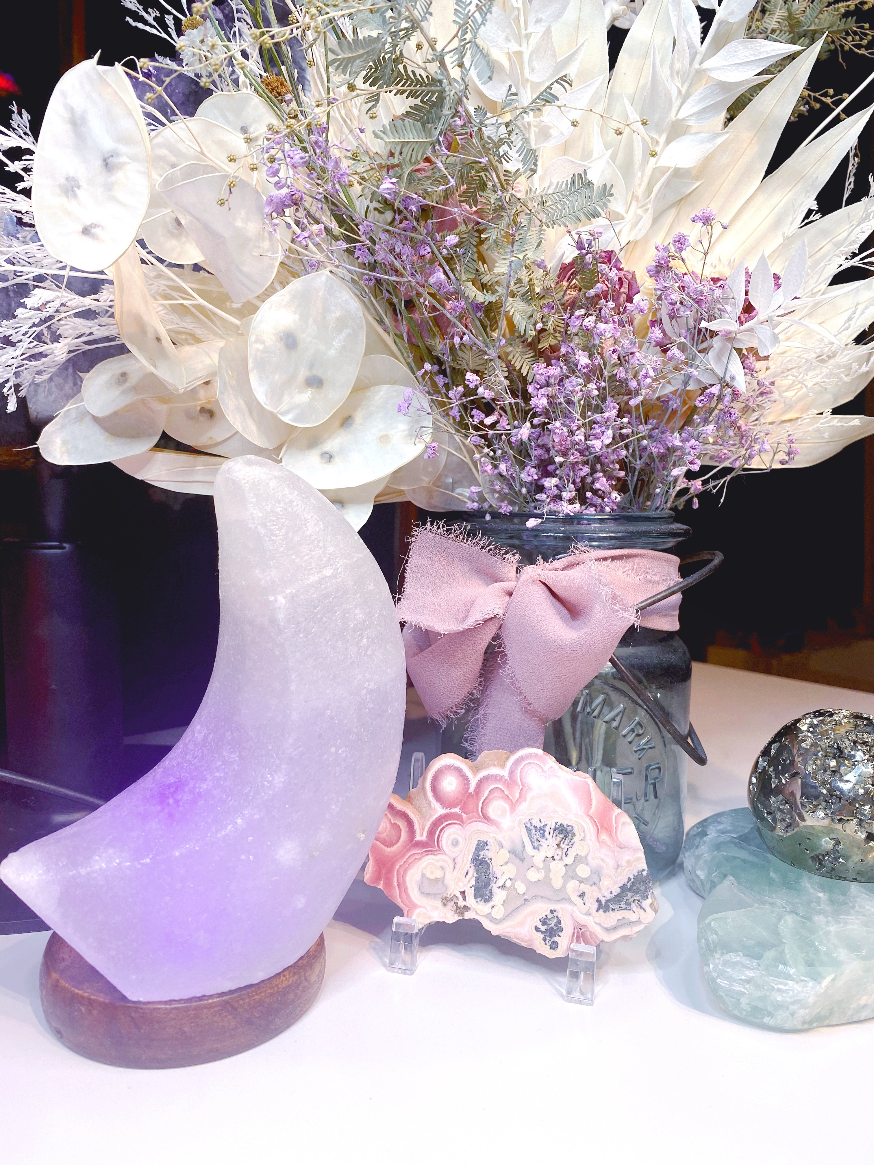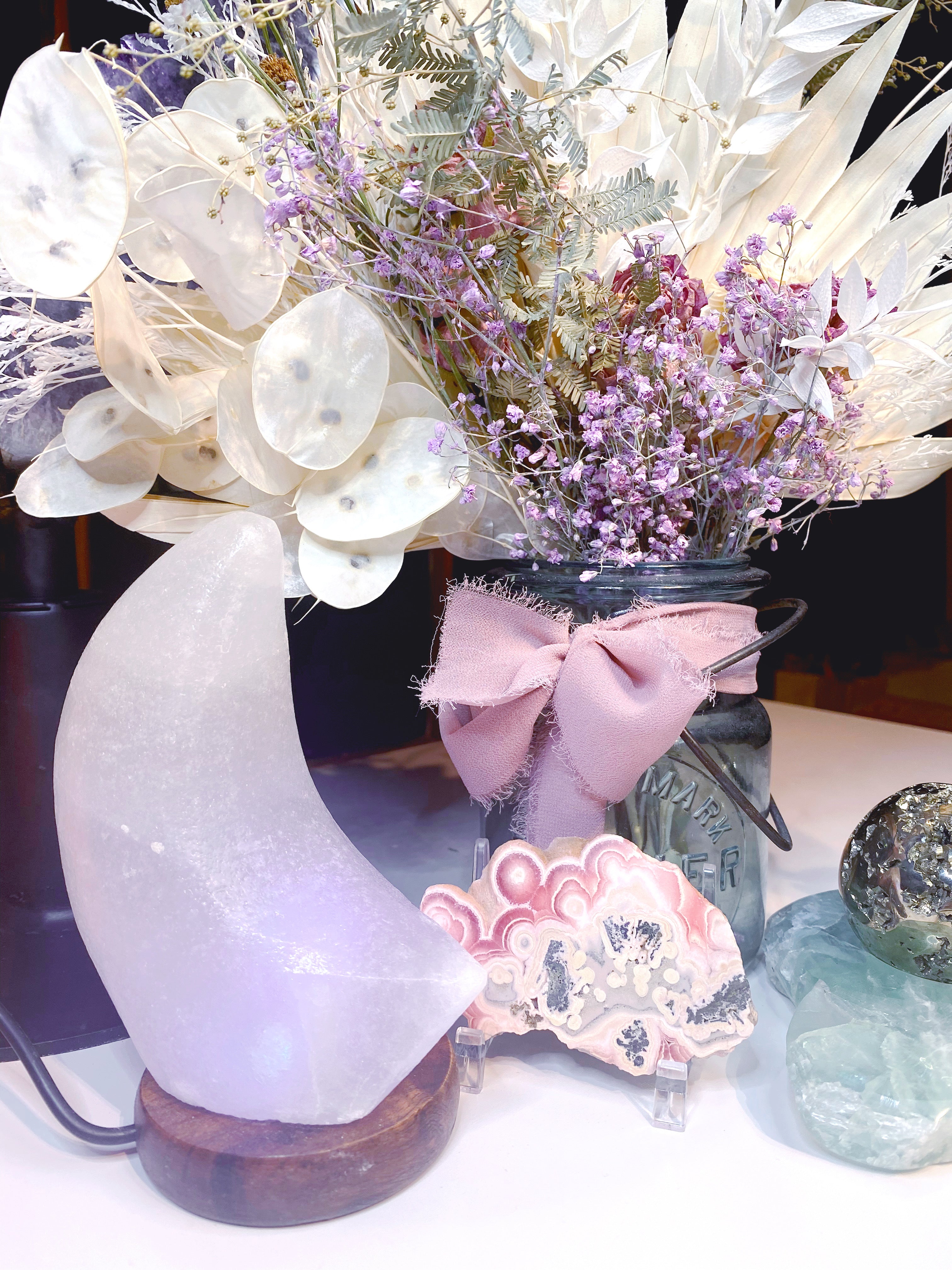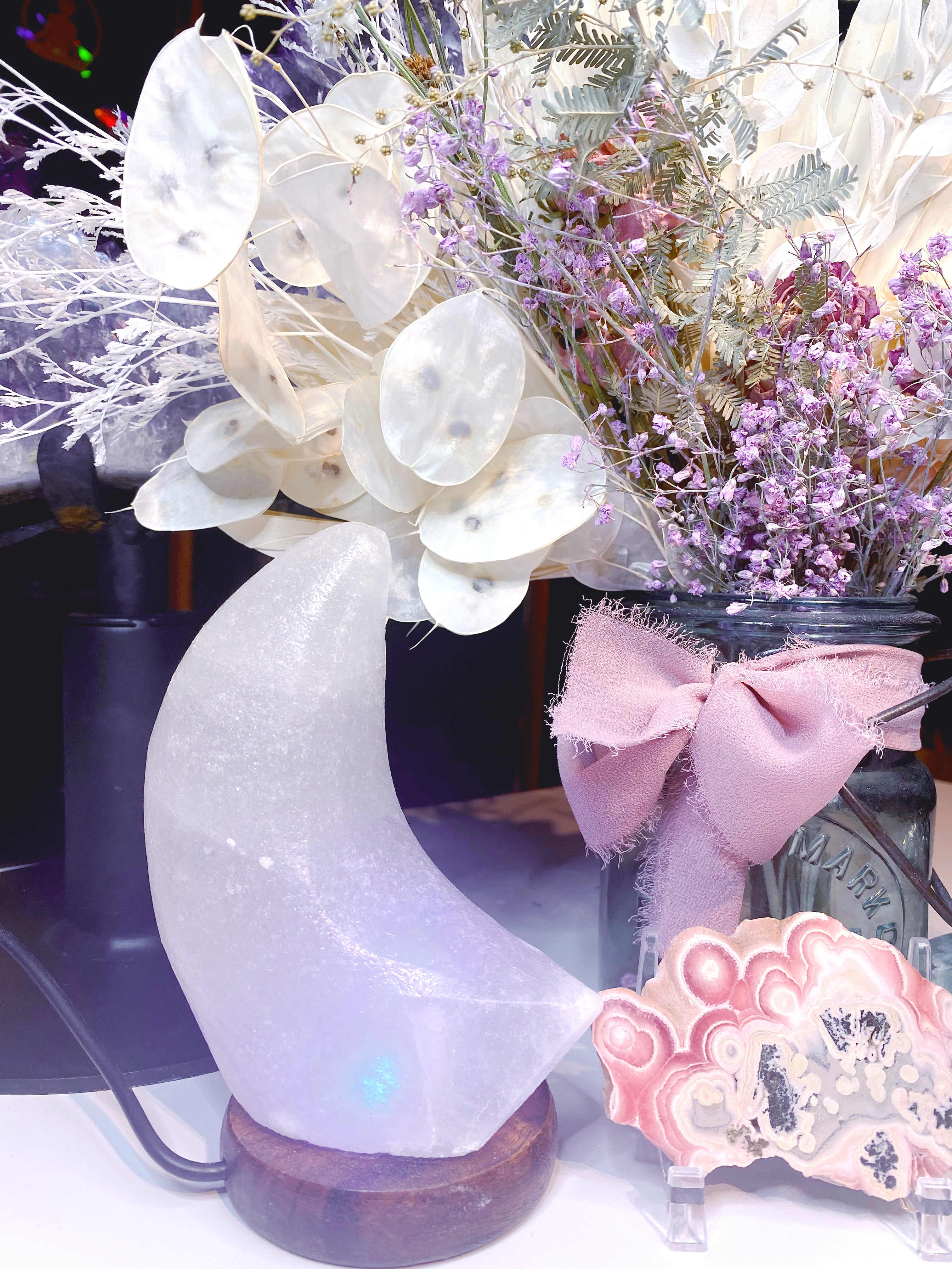 These Crescent Moon Himalayan Salt Lamps are perfect for any room. They are thought to be an energy booster and help in purifying the air around you. Himalayan salt helps to uplift your mood, reduce stress and aides in relaxation.