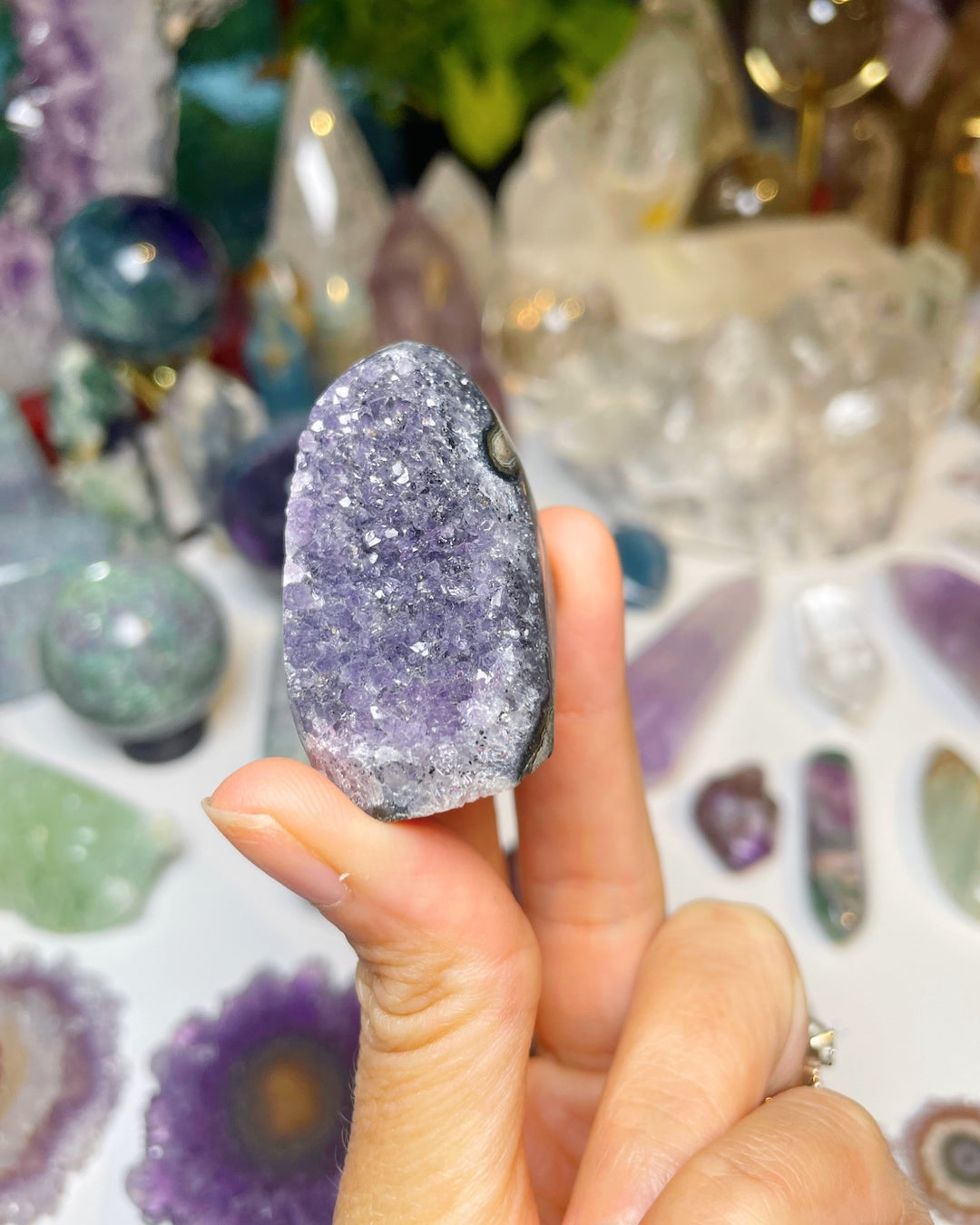 Amethyst: is said to be an extremely powerful and protective stone that creates a protective shield around the body and purifying unwanted energy. Helps to calm and focus the mind leading to accomplishing goals. Great support for sobriety or breaking bad habits. Aids in dispelling of nightmares and insomnia. Eases stress and anxiety.