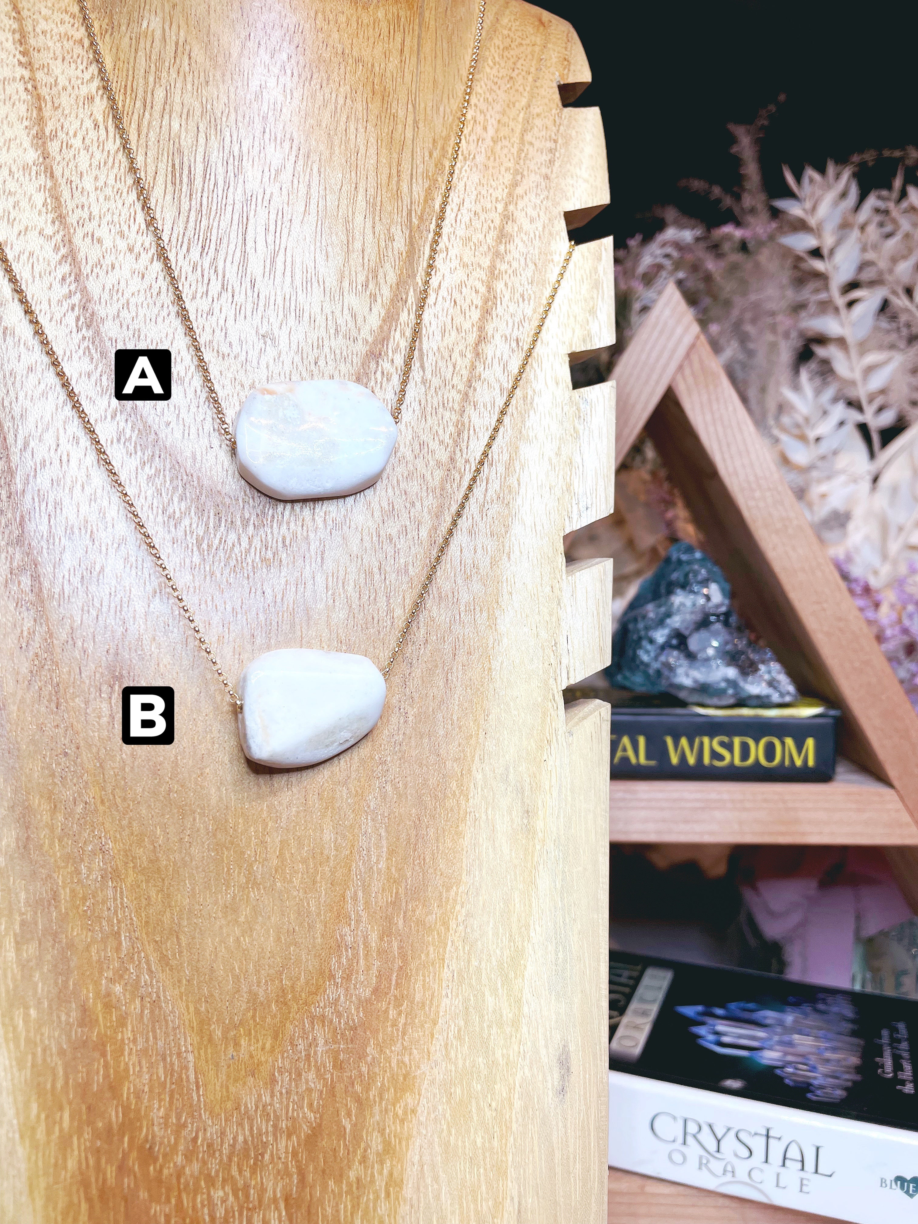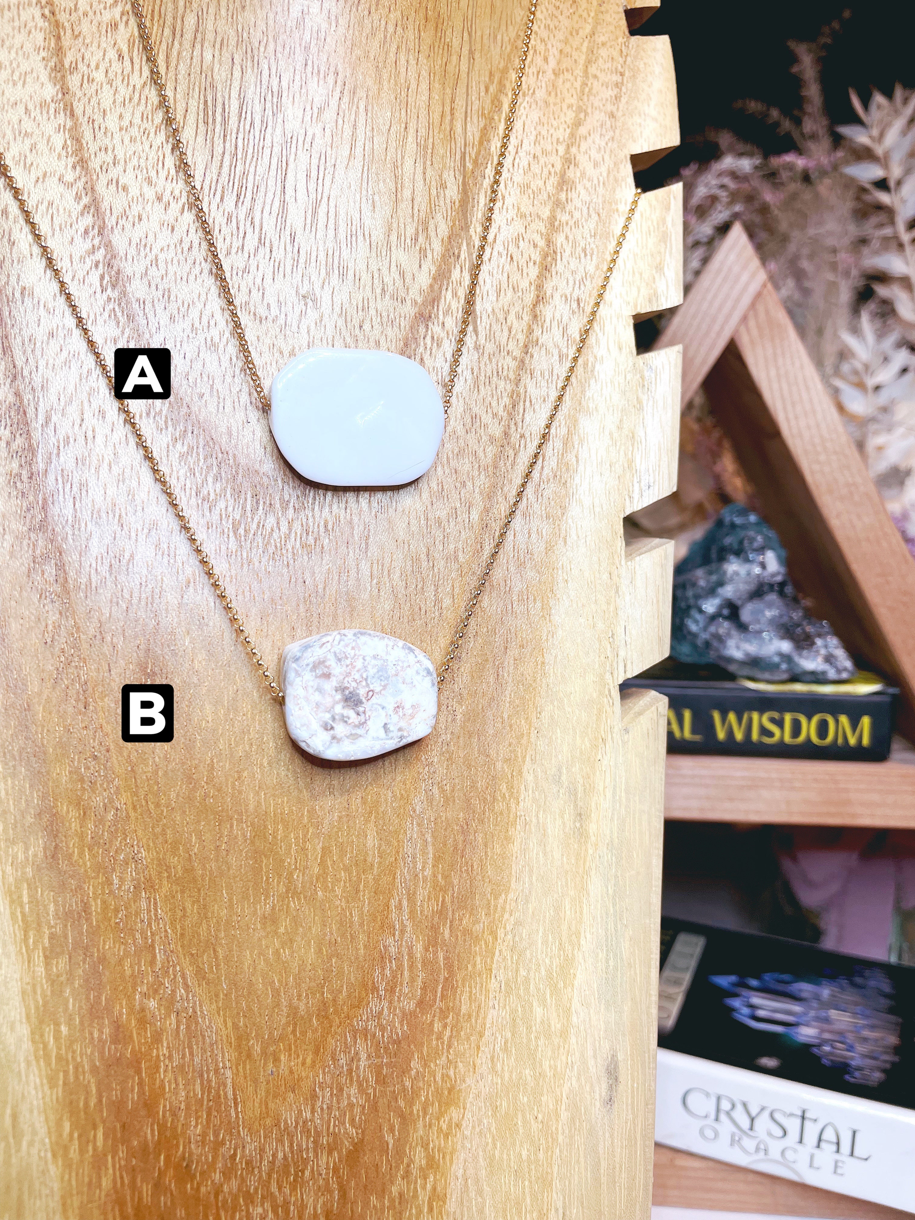 Beautiful white agate pendant on a 16” 14k gold filled rolo chain. White Agate pendant measures approximately 1” long x 0.75” wide.