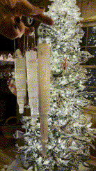 Add a touch of crystalline magic to your holiday decor with these selenite icicle ornaments, expertly hand-carved in Morocco. These translucent beauties reflect the twinkling lights of your tree, creating a serene, wintry glow that enhances any festive space.